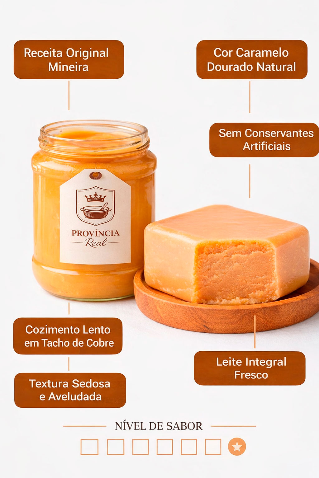 A jornada de cada barra da Província Real começa muito antes do fogo ser aceso. Ela nasce na seleção rigorosa do leite fresco e puro, o ingrediente vital que confere a base para a nossa linhagem de doces. Diferente das produções industriais que utilizam atalhos químicos, nós preservamos o tempo. São horas de paciência e cuidado para que a redução aconteça de forma natural, respeitando o ritmo sagrado do ingrediente.